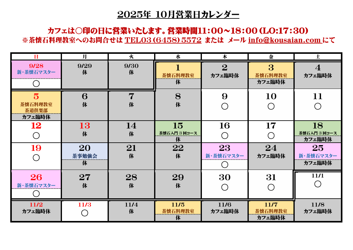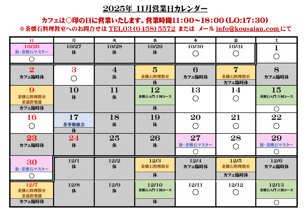 (月・火・水以外でも料理教室、イベント開催などで臨時休の場合がございますのでホームページの営業日カレンダーにてご確認ください。)